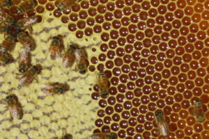 Le api sigillano il miele nelle celle dei favi con uno strato di cera quando è pronto. Questo lo protegge dall’umidità e dai batteri, conservandolo a lungo e garantendo che rimanga nutriente fino a quando servirà alla colonia.