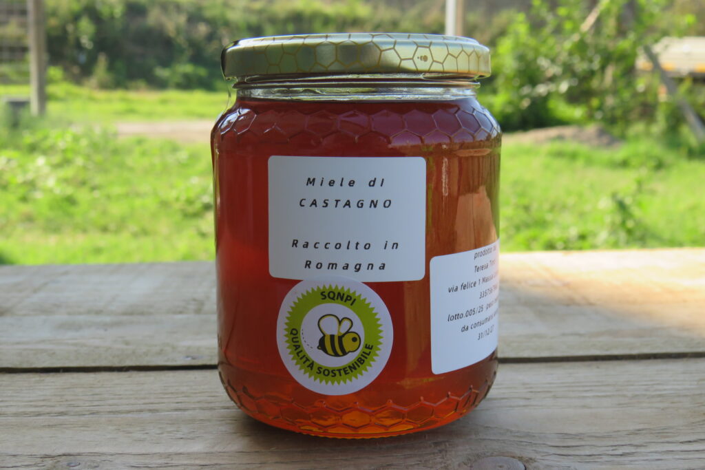 Miele di Castagno dal colore ambrato scuro e dal sapore intenso, leggermente amaro con note tanniche e speziate. Cristallizza lentamente, assumendo una consistenza densa e corposa. Ricco di minerali e antiossidanti, è perfetto per chi ama un gusto robusto, ideale da gustare con formaggi e tisane.